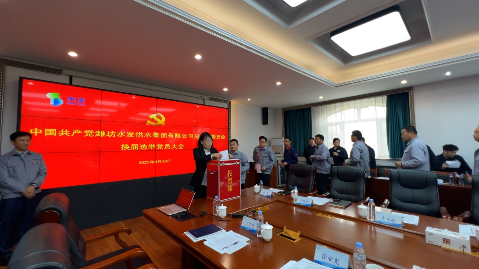 4月18日,中國共產(chǎn)黨濰坊水發(fā)供水集團(tuán)有限公司總支部委員會換屆選舉黨員大會在供水集團(tuán)隆重召開,供水集團(tuán)黨總支班子成員、黨員59人出席大會,水控集團(tuán)黨委委派專人到會指導(dǎo)。