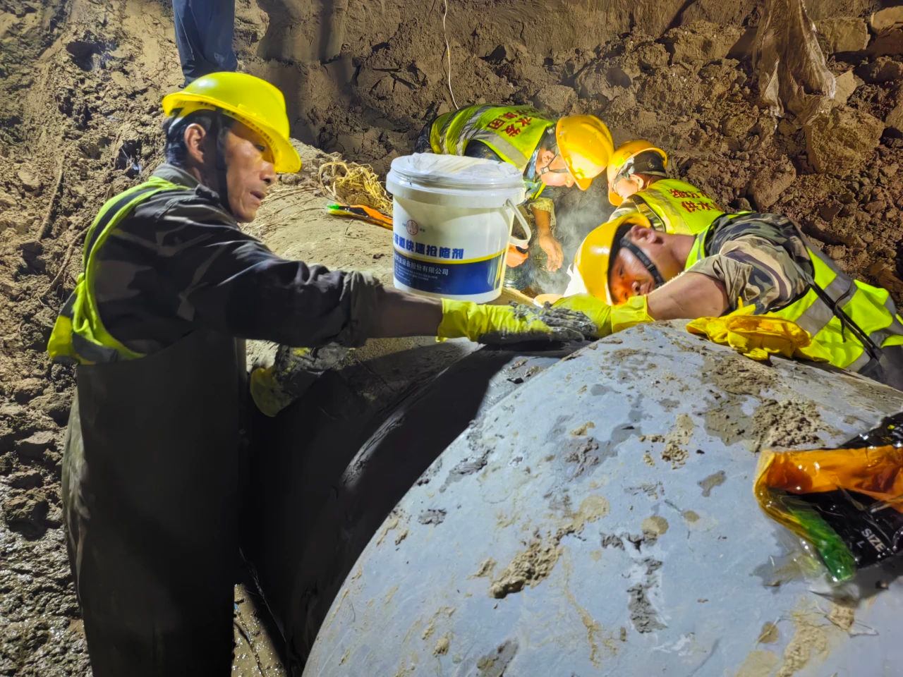 接到報(bào)告后,公司立即啟動(dòng)應(yīng)急預(yù)案,黨員突擊隊(duì)在第一時(shí)間集結(jié),帶上專(zhuān)業(yè)工具和設(shè)備奔赴故障現(xiàn)場(chǎng),勘查破損位置。同時(shí)利用管網(wǎng)互通的有利條件,緊急協(xié)調(diào)第三供水管線(xiàn)向第一供水管線(xiàn)下游用戶(hù)持續(xù)供水,以解燃眉之急。